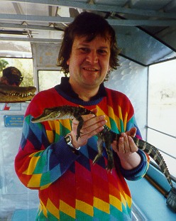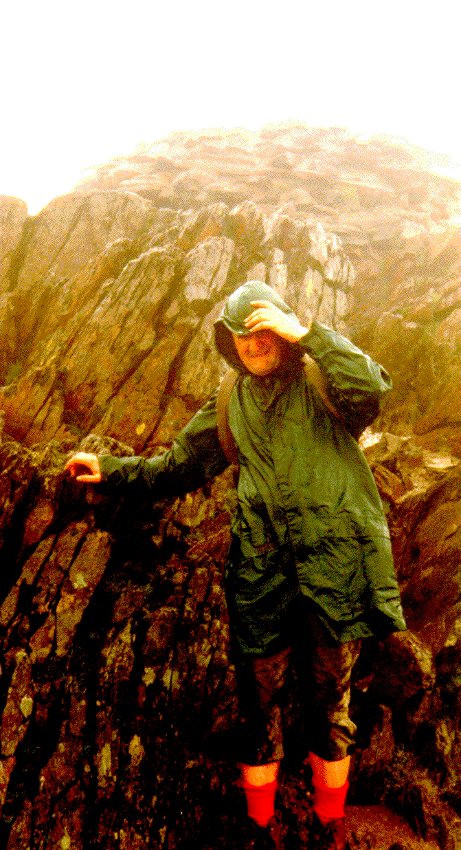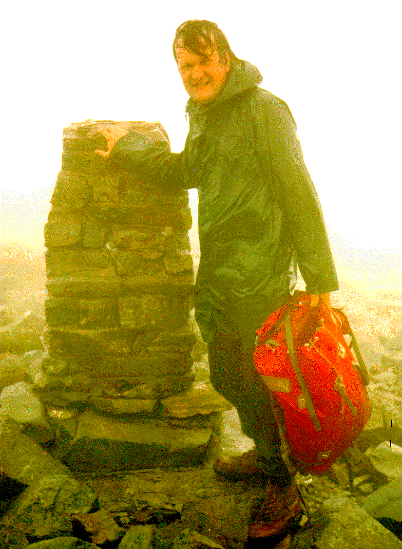 Lovers of mountains and scenic views might also like to look at pictures of me on top of Scafell Pikes (England's highest mountain) and Snowdon (Wales's highest mountain). Nice we're having weather! Also The U.K.'s highest mountain Ben Nevis (it was misty but dry!). If you prefer hills to people, here's a picture of Ben Nevis by itself. For more mountains look at my watercolour collection. If, like me, you are fond of the British Broadcasting Corporation's long running radio soap opera "The Archers", here is a picture of Peggy Woolley (Peggy Archer as was) and me playing Scrabble. I am the one in the bright pullover. In my spare time I wrestle alligators. For further examples of egocentrism see my conference pictures.